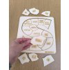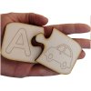Drevené puzzle Abeceda s obrázkami, ktoré deti môžu vymaľovať ľubovoľnými farbami, podporuje učenie abecedy a rozvoj kreativity zábavným spôsobom.